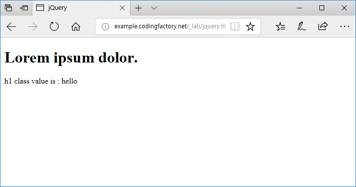 h1 요소의 class 속성의 값을 가져와서 출력합니다.