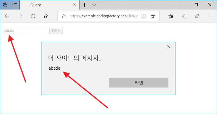 는 아이디가 jbInput인 input 요소의 값을 ABCDE로 정합니다.