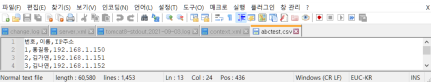3) 줄 종결자 : csv파일을 메모장으로 열어 하단에 Windows (CRLF)로 되어있다면 그대로 적용해주면 되고,